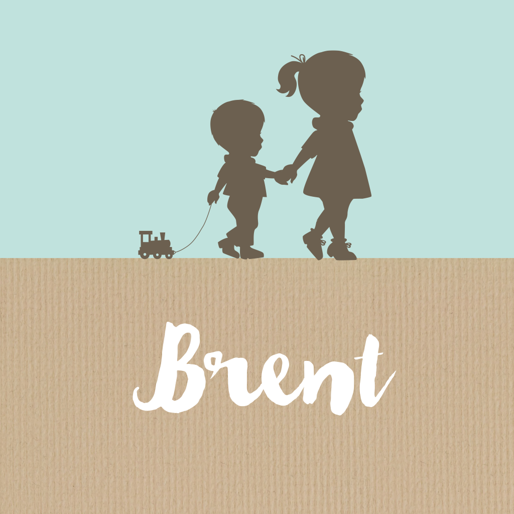 Leuke geboortekaart met kraftpapier en silhouet van grote zus met haar nieuwe lieve broertje.