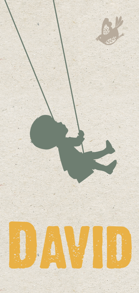 Hip geboortekaartje met silhouet van jongen op een schommel