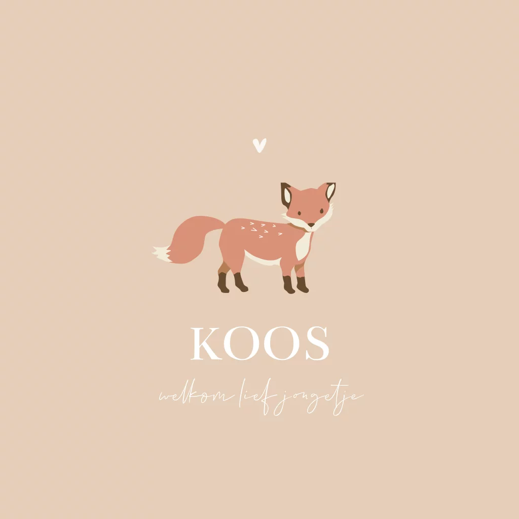 Wat een lief geboortekaartje! Dit schattige unisex geboortekaartje heeft een schattige illustratie van een vosje. De teksten, kleuren en lettertype kun je zelf aanpassen in onze online editor. Het kaartje heeft ronde hoeken voor een extra zachte uitstraling.