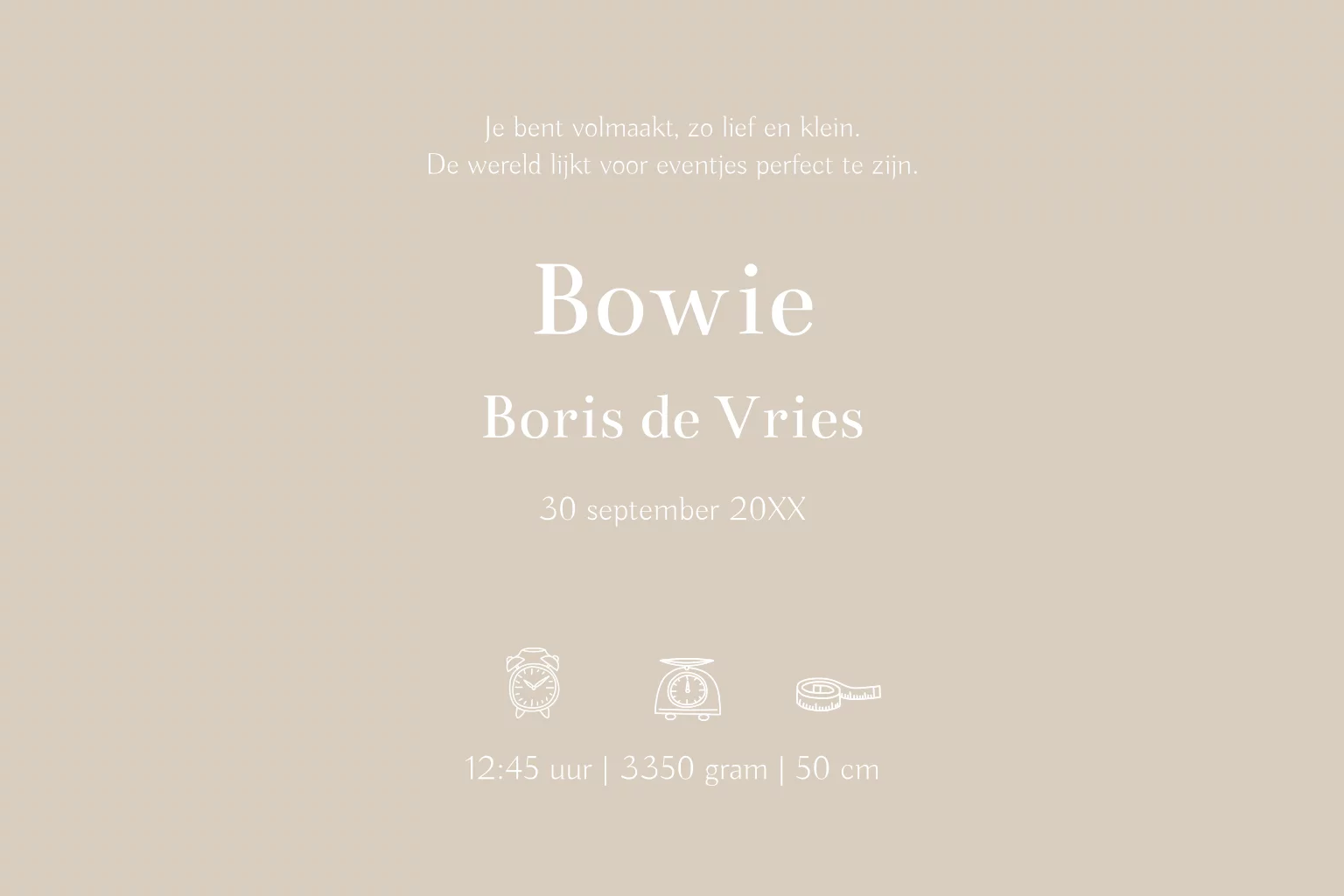Wat een uniek en tof unisex geboortekaartje voor jouw kleintje. Dit kaartje heeft zachte beige tinten en getekende illustraties zoals een ooievaar en verschillende takjes en bloemen. Pas de kleuren van het kaartje naar wens aan in onze online editor.