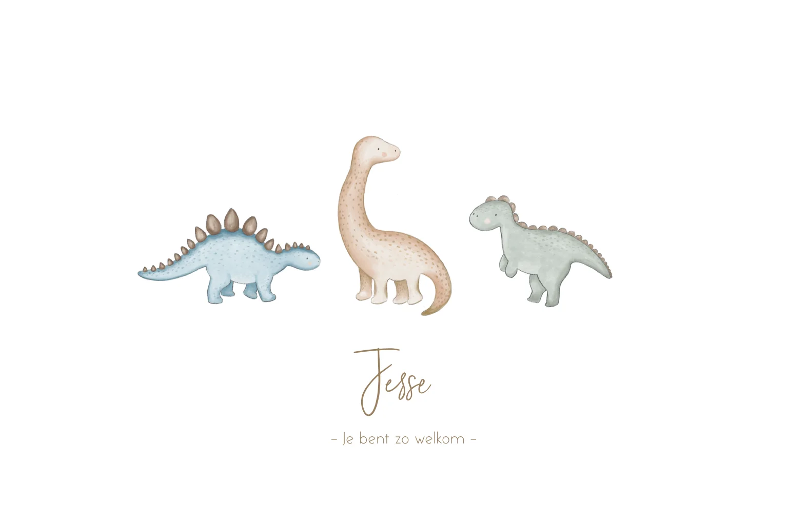 Schattig geboortekaartje jongen met drie dinosaurussen