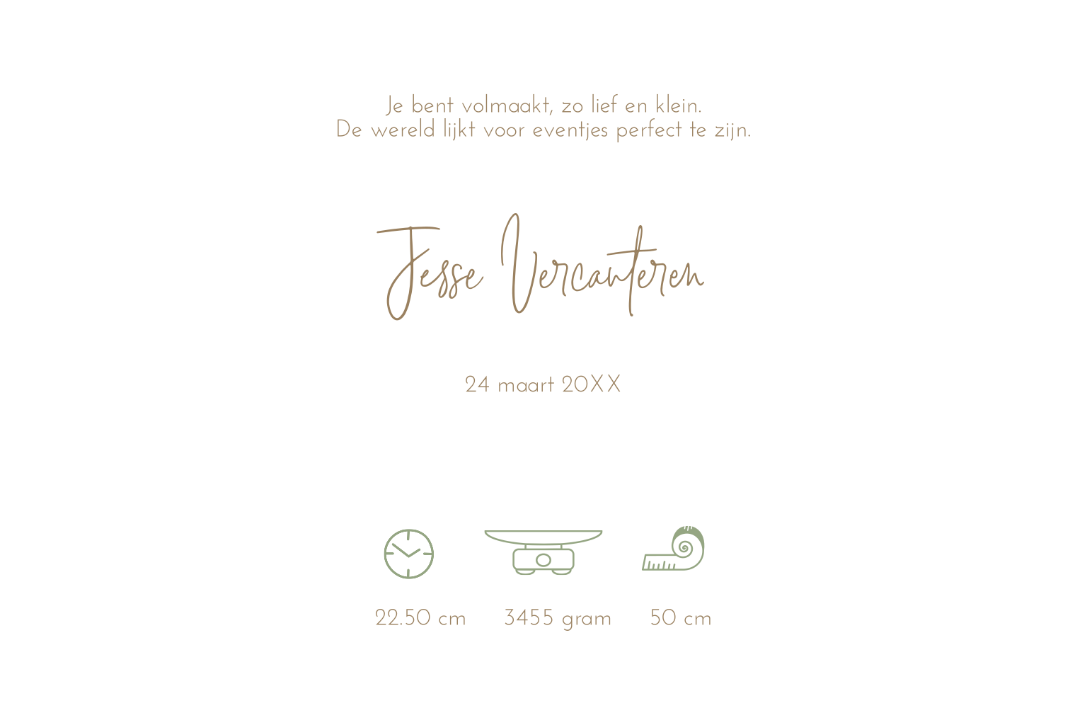 Lief geboortekaartje met een illustratie van drie schattige hand getekende dino's. Het kaartje heeft een minimalistische uitstraling en is volledig te personaliseren in onze online editor.