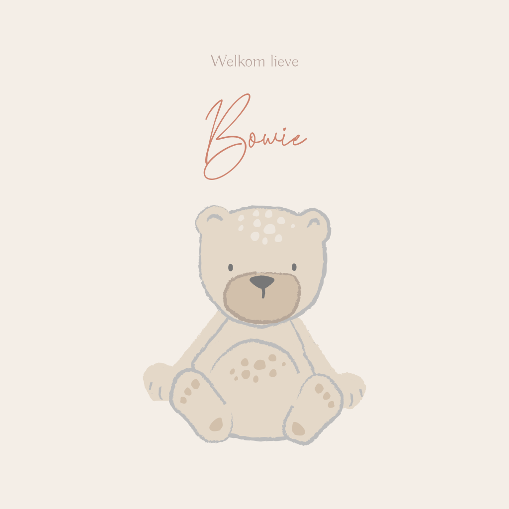 Een lief geboortekaartje voor jullie toekomstige kleintje. Op het kaartje zie je een lieve illustratie van een beertje. Pas het kaartje naar wens aan in onze online editor.