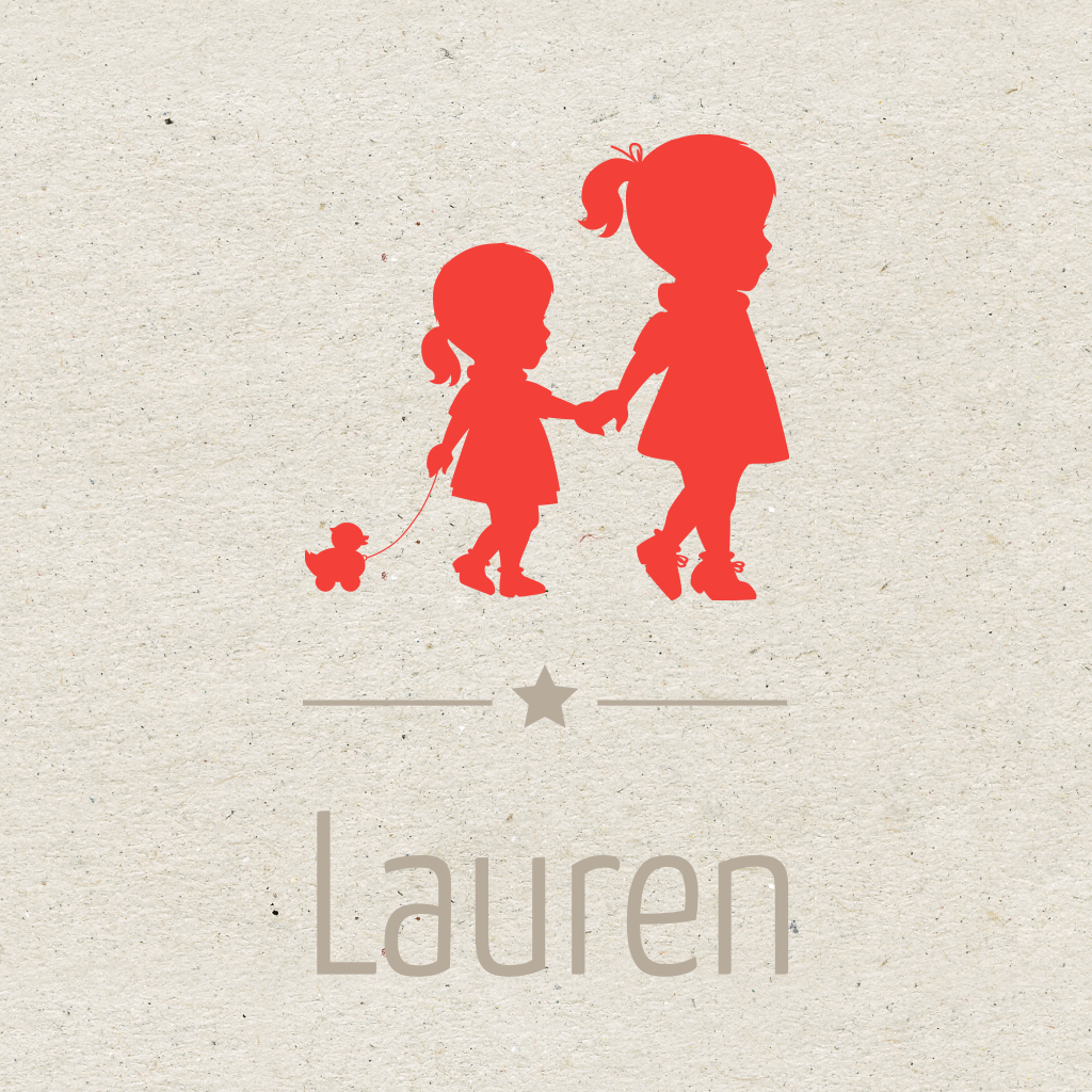 Stoere babykaart voor dochter met zusje en eendje. Maak er je eigen kaartje van door de onderdelen een andere kleur te geven.
