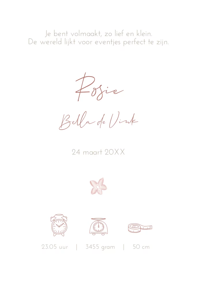 Lief geboortekaartje meisje met roze watercolour silhouetje
