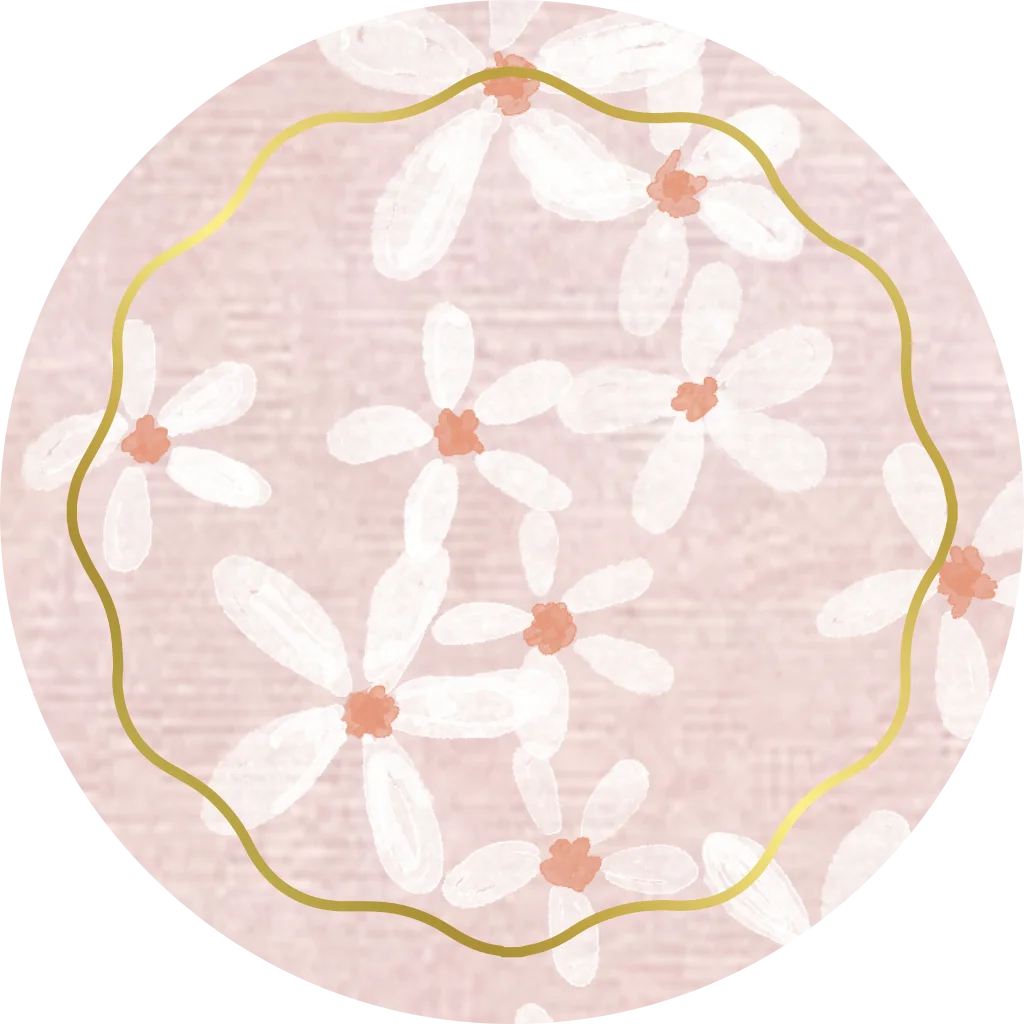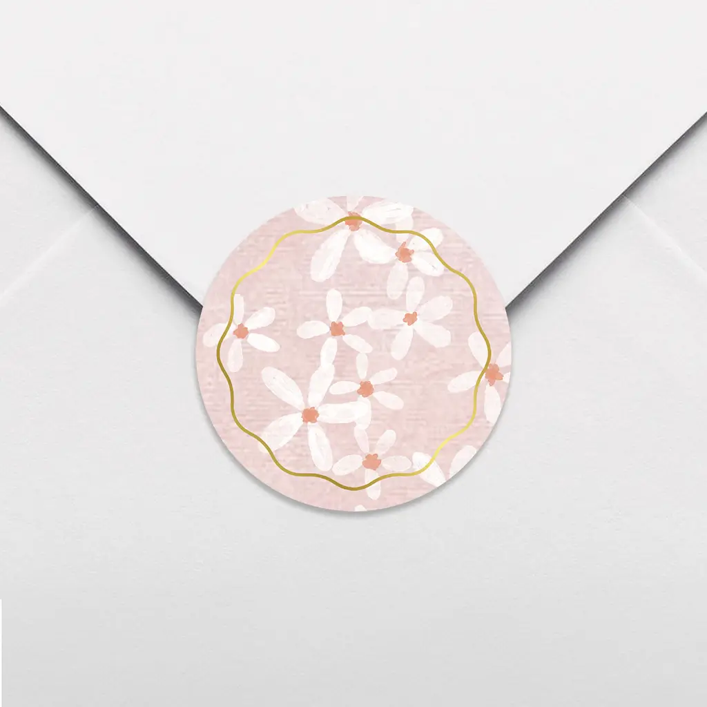 Een lieve sluitsticker passend bij het geboortekaartje. De sticker heeft een roze achtergrond met bloemetjespatroon. De sticker heeft goudfolie details. Pas het ontwerp naar wens aan.