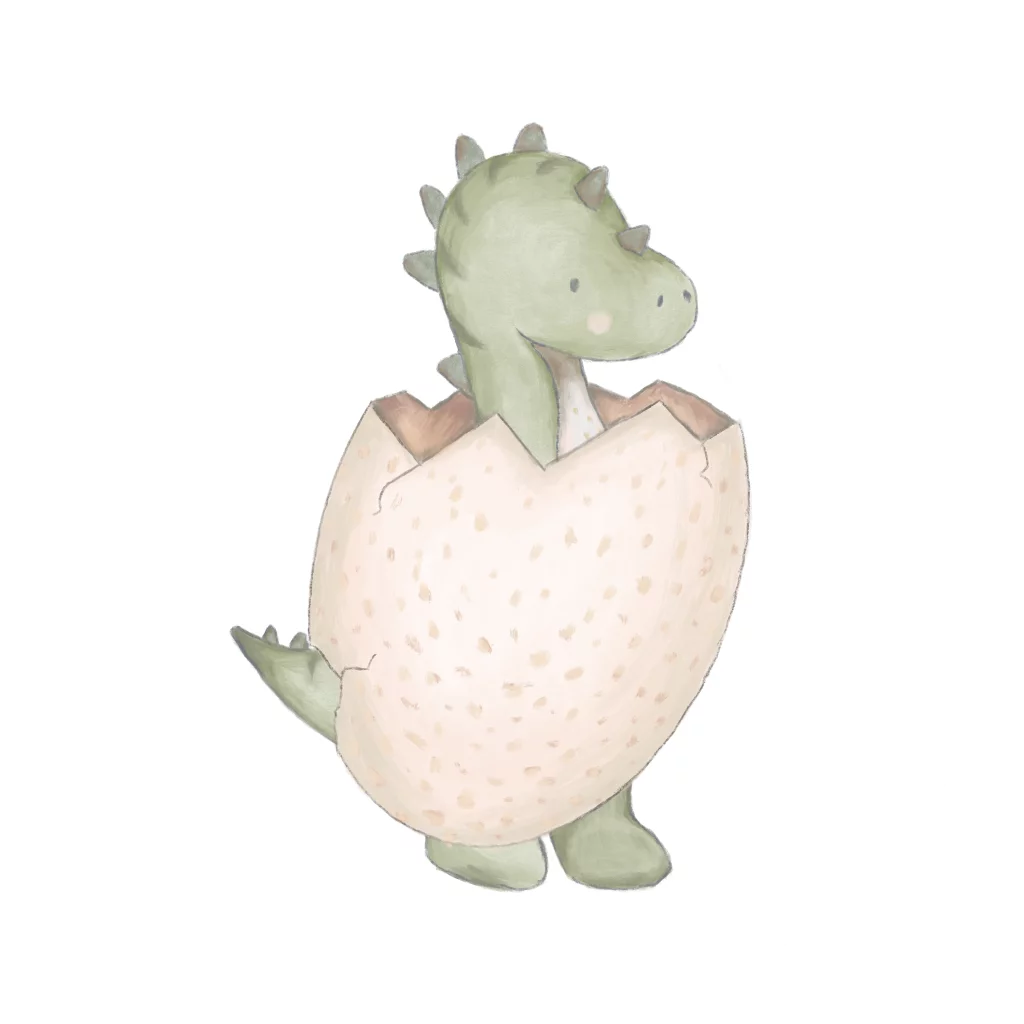 Een sluitsticker met een illustratie van een schattige dino die uit een ei breekt. De sticker past perfect bij het geboortekaartje van onze designer JilleJille en is volledig te personaliseren.