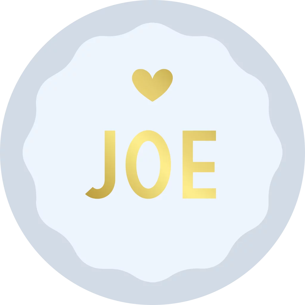 Een mooie sluitzegel met een golvende rand. De naam is hier gedrukt in goud foliedruk en kun je aanpassen naar een andere kleur. Ook het lettertype en de kleuren van de achtergrond kun je zelf aanpassen.