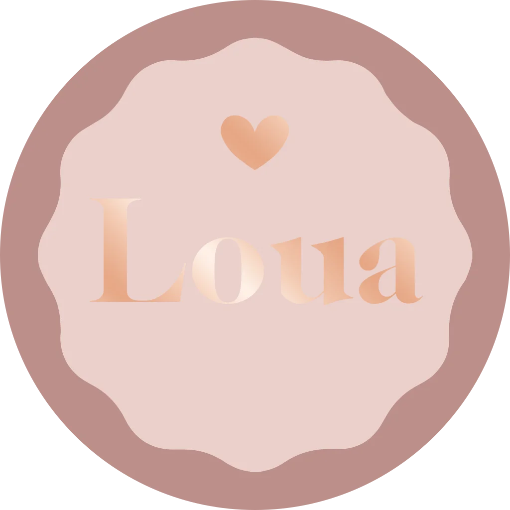 Een mooie sluitzegel met een golvende rand. De naam is hier gedrukt in rosè foliedruk en kun je naar eigen wens aanpassen. Ook het lettertype en de kleuren van de achtergrond kun je zelf aanpassen.