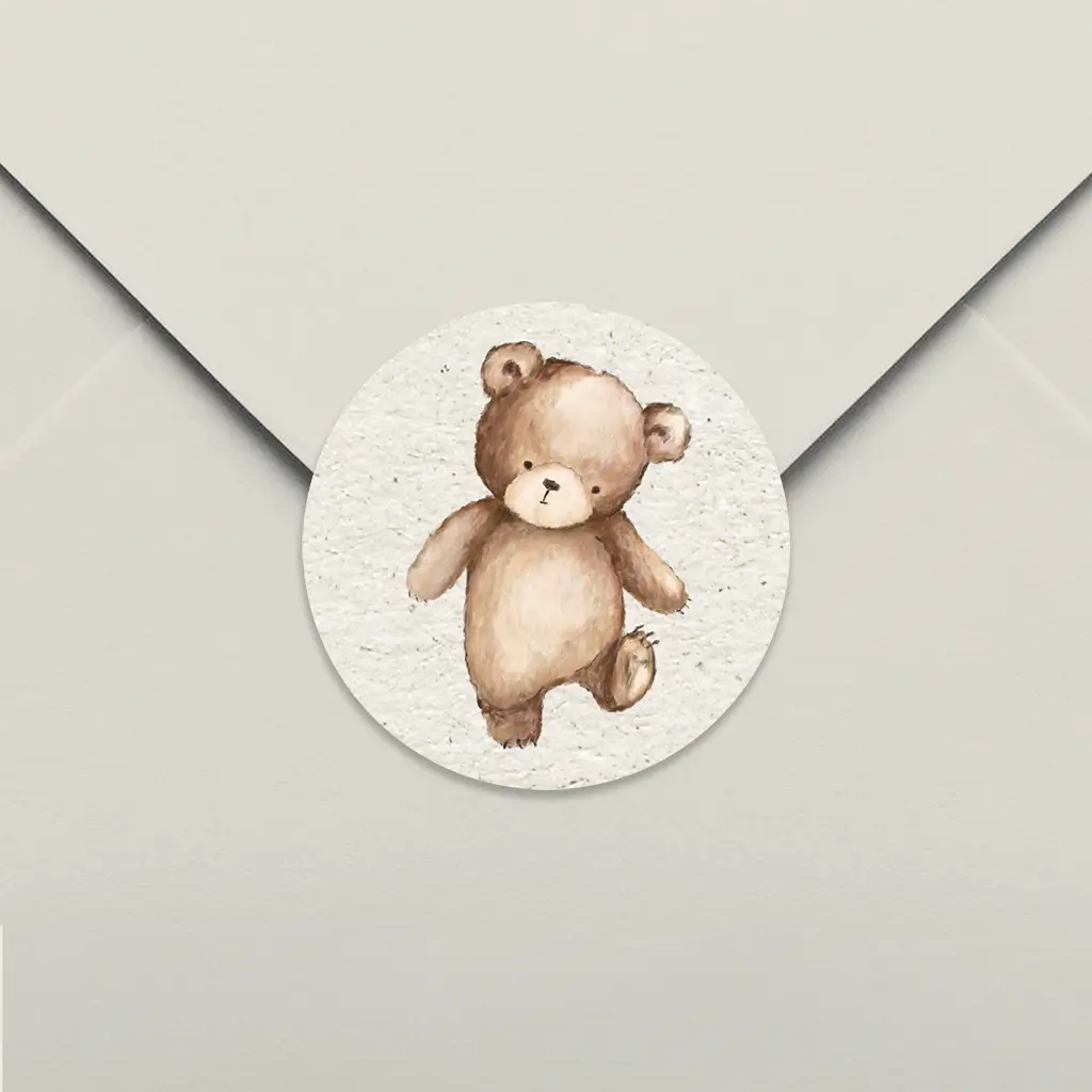 Een beige sluitsticker met illustratie van een beertje. Pas het ontwerp naar wens aan in onze online editor.