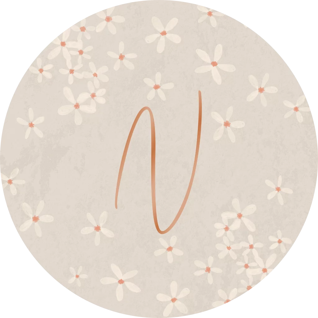 Een stijlvolle sluitsticker passend bij het geboortekaartje. De sticker heeft een beige achtergrond met daarop een bloemetjes patroon van witte bloemen. In het midden lees je het initiaal van jouw kindje in hoogglans. Pas het ontwerp naar wens aan in de editor.