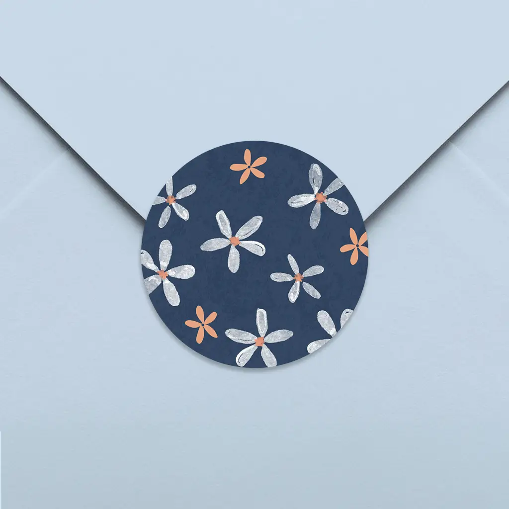 Dit is een mooie sluitsticker met donkerblauwe velvet-look achtergrond en watercolour bloemen in wit en koperkleur. De sluitsticker staat prachtig in combinatie met het geboortekaartje van Jille Jille.