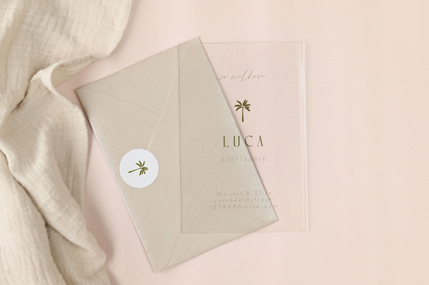 Arcyl geboortekaartje stijlvol met palmboom