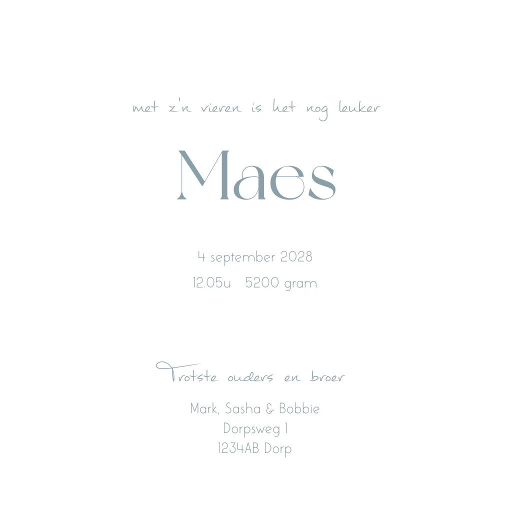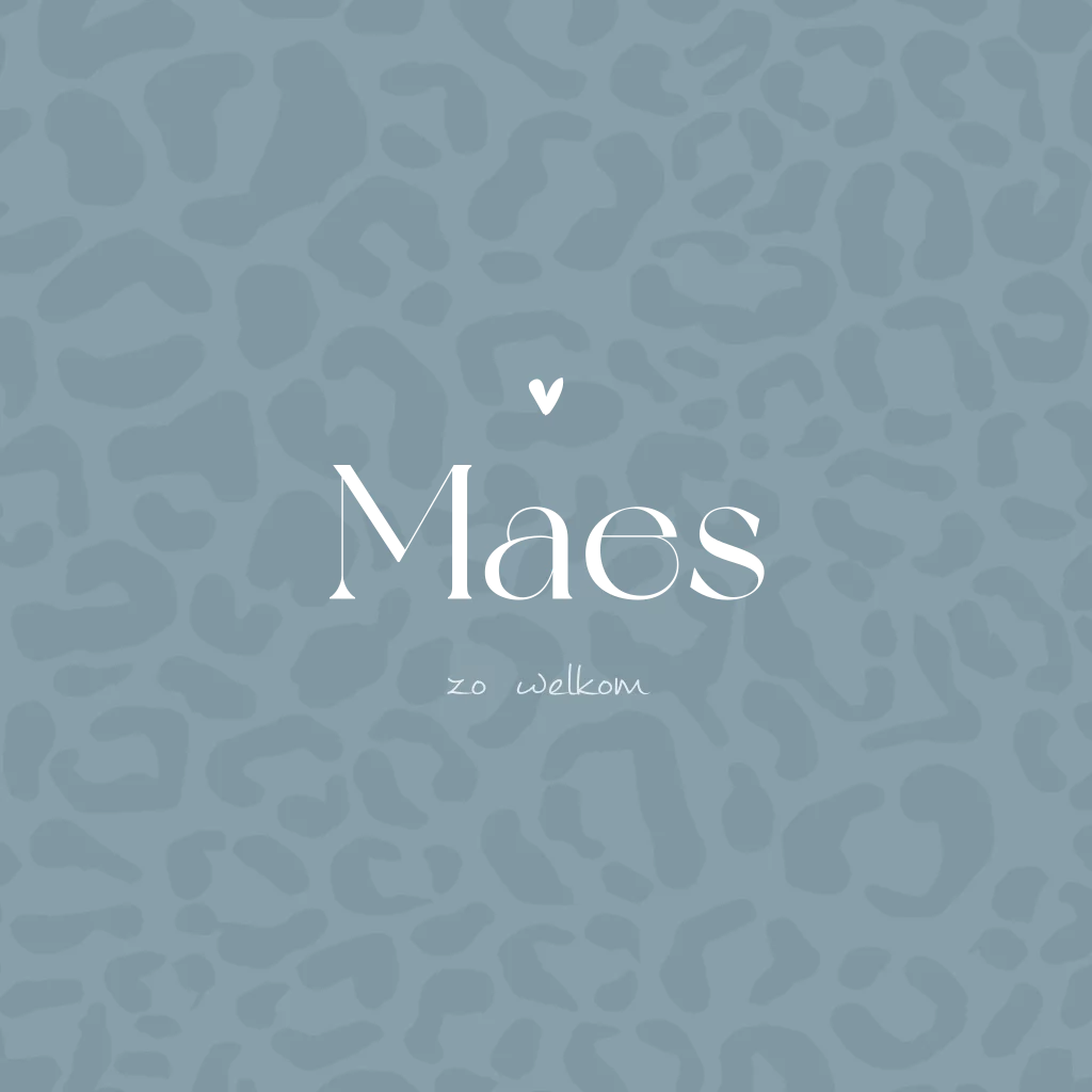 Een hip geboortekaartje voor jouw kindje. Het kaartje heeft een blauwe achtergrond met daarop een panterprint. De naam wordt gedrukt in goudfolie. Pas het ontwerp naar wens aan in onze online editor.