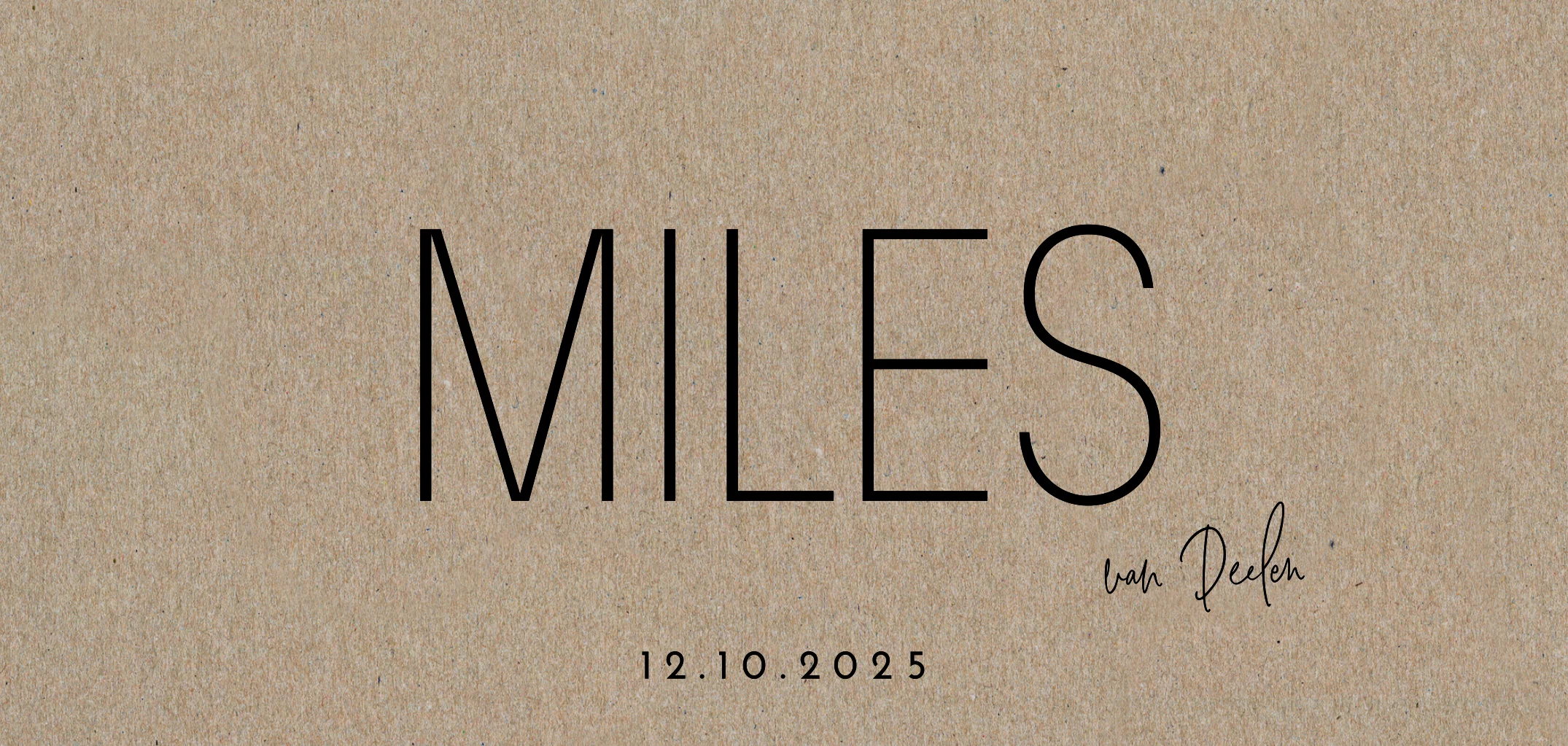 Trendy geboortekaartje voor je zoontje met een minimalistisch ontwerp op een kraft papier achtergrond. Kies een lettertype naar keuze en verstuur dit hippe geboortekaartje!