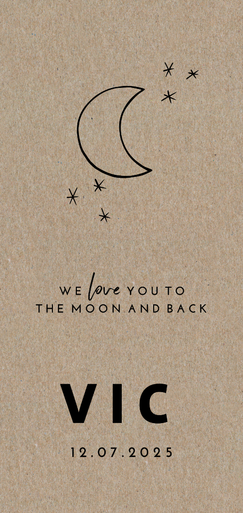 Trendy echt kraft karton geboortekaartje voor jongen met stoer maantje