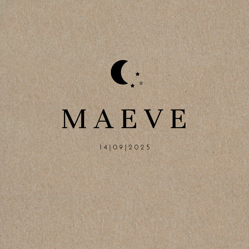Stoer geboortekaartje voor je pasgeboren dochter met trendy maan en sterretjes op echt kraft karton.