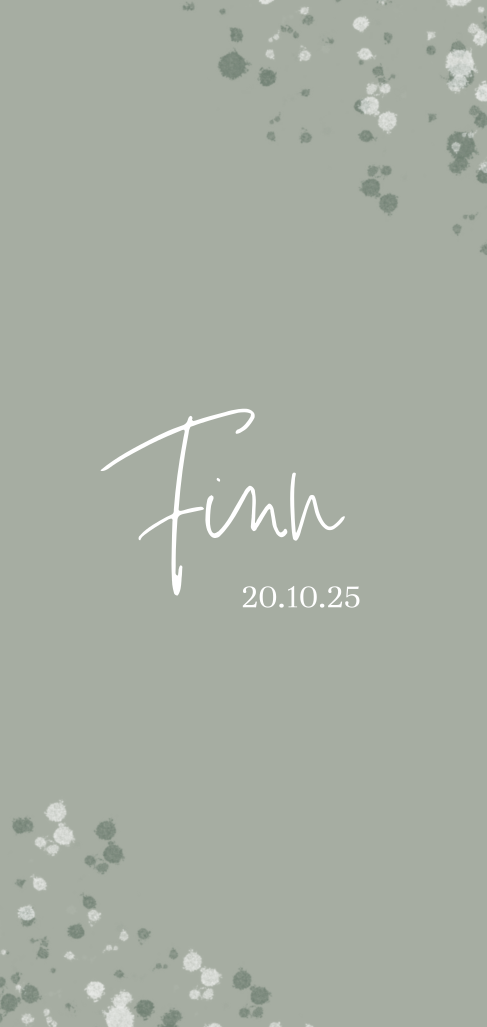 Hippe geboortekaart voor de geboorteaankondiging van je zoon met vrolijke verf spetters in natuurlijke groene tinten.