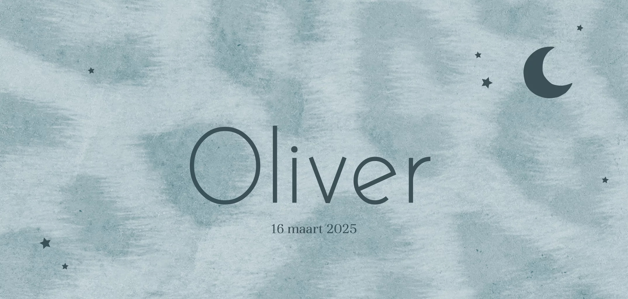 Dit geboortekaartje met sterrenhemel en velvet look achtergrond is helemaal van nu! Het kaartje heeft een stoere uitstraling door de blauwe luipaard print. Maak hem in de online editor helemaal af met je eigen teksten en de naam van jullie zoontje.