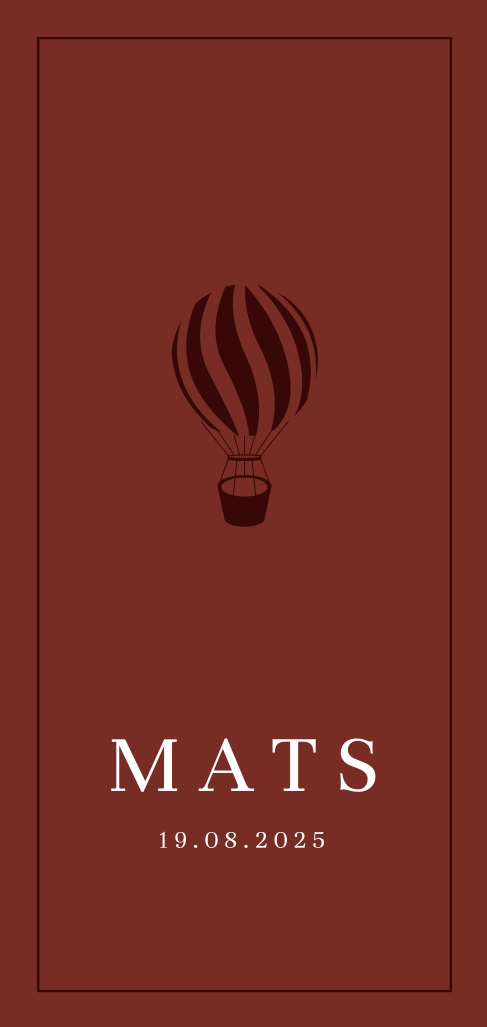 Hip geboortekaartje voor je zoontje met een avontuurlijke luchtballon in ton sur ton tinten op een wijnrode achtergrond. Echt een trendy geboortekaartje!Totaalprijs: 0 |