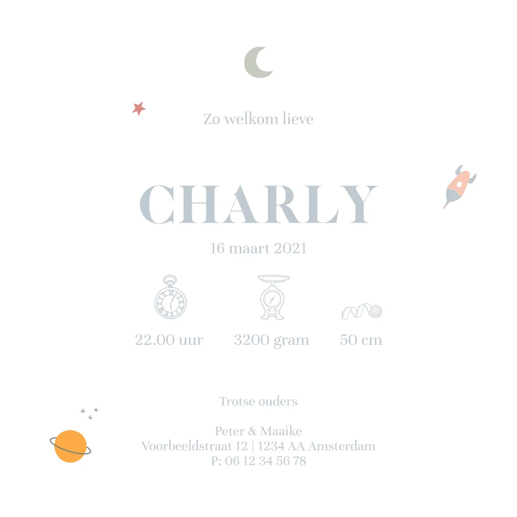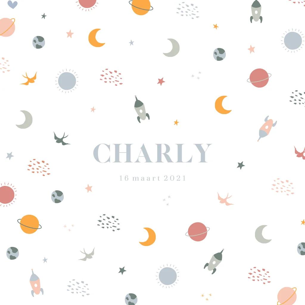 Hip geboortekaartje met ruimte thema