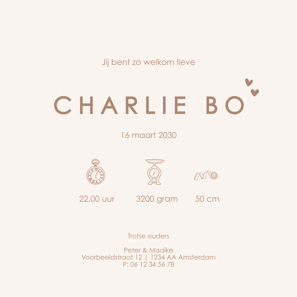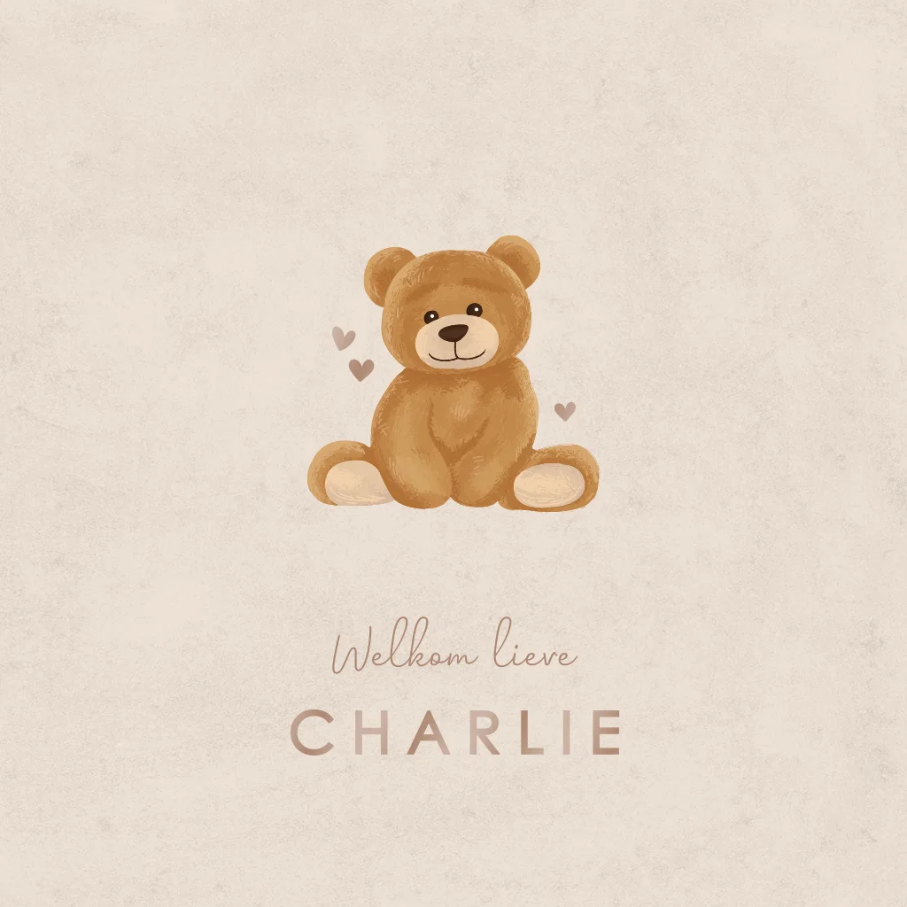 Kondig de geboorte van jullie zoon of dochter aan met dit lieve kaartje. Het kaartje heeft een lichte achtergrond met getekend zittend beertje en hartjes. Ook zo'n fan van dit kaartje? Bestel een proefdruk en bewonder dit kaartje in het echt!