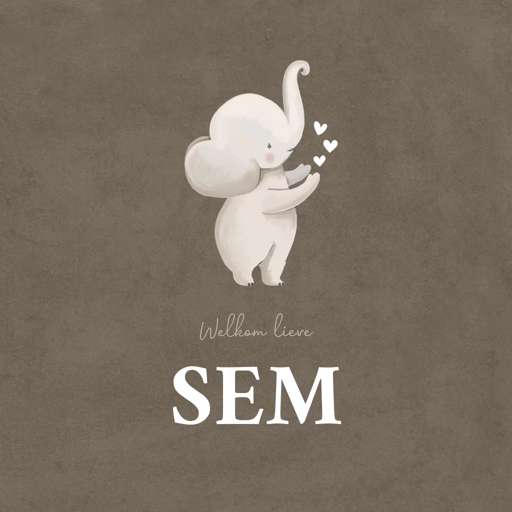 Kondig de geboorte van jullie zoon of dochter aan met dit lieve kaartje. Het kaartje heeft een donkergroene betonlook achtergrond met illustratie van een lief olifantje. Ook zo'n fan van dit kaartje? Bestel een proefdruk en bewonder dit kaartje in het echt!