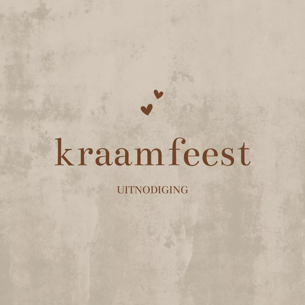 Kraamfeest uitnodiging bruin velvet-look met hartjes