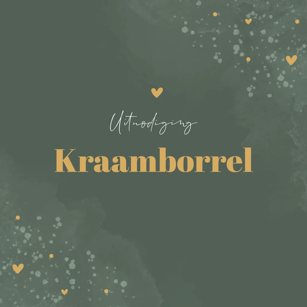Kondig het kraamfeest van jullie kindje aan met deze mooie kaart. Het kaartje heeft een groene velvet-look achtergrond en goudkleurig hartjes. Sommige spetters worden ook gedrukt in goedkleur.