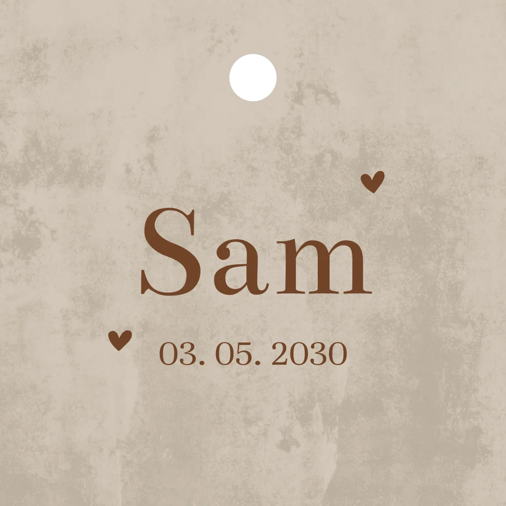 Doopsuiker labeltje in de stijl van het geboortekaartje. Dit labeltje heeft een beige achtergrond met daarop een lieve hartjes. Pas het ontwerp naar wens zelf aan.
