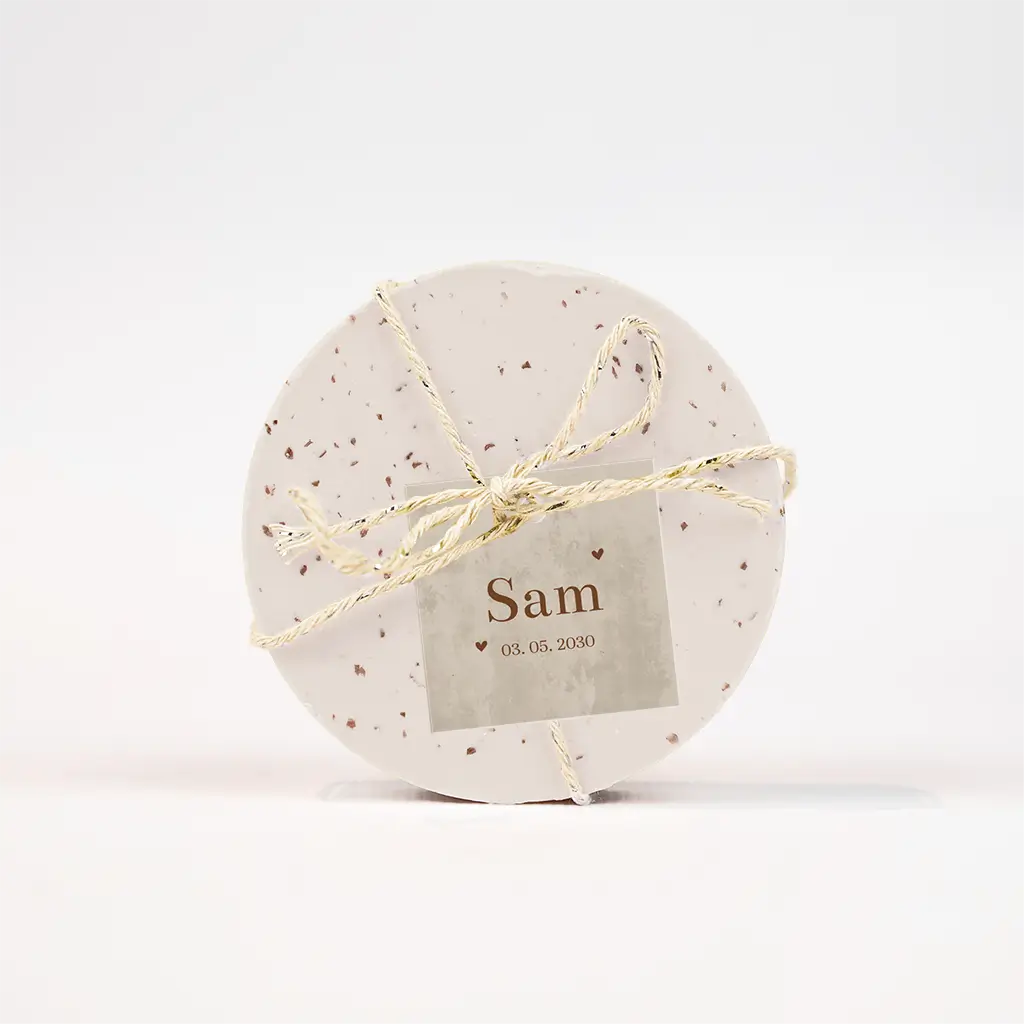Het label kan je doormiddel van een lief lintje, touwtje, of paperclip bevestigen aan de doopsuiker. Deze kun je hier vinden. Let op: omdat je kunt kiezen uit verschillende bevestigingsmaterialen bestel je het bevestigingsmateriaal van jouw voorkeur los bij het product. Wanneer je de producten thuis krijgt, zet je ze hiermee zelf in elkaar.