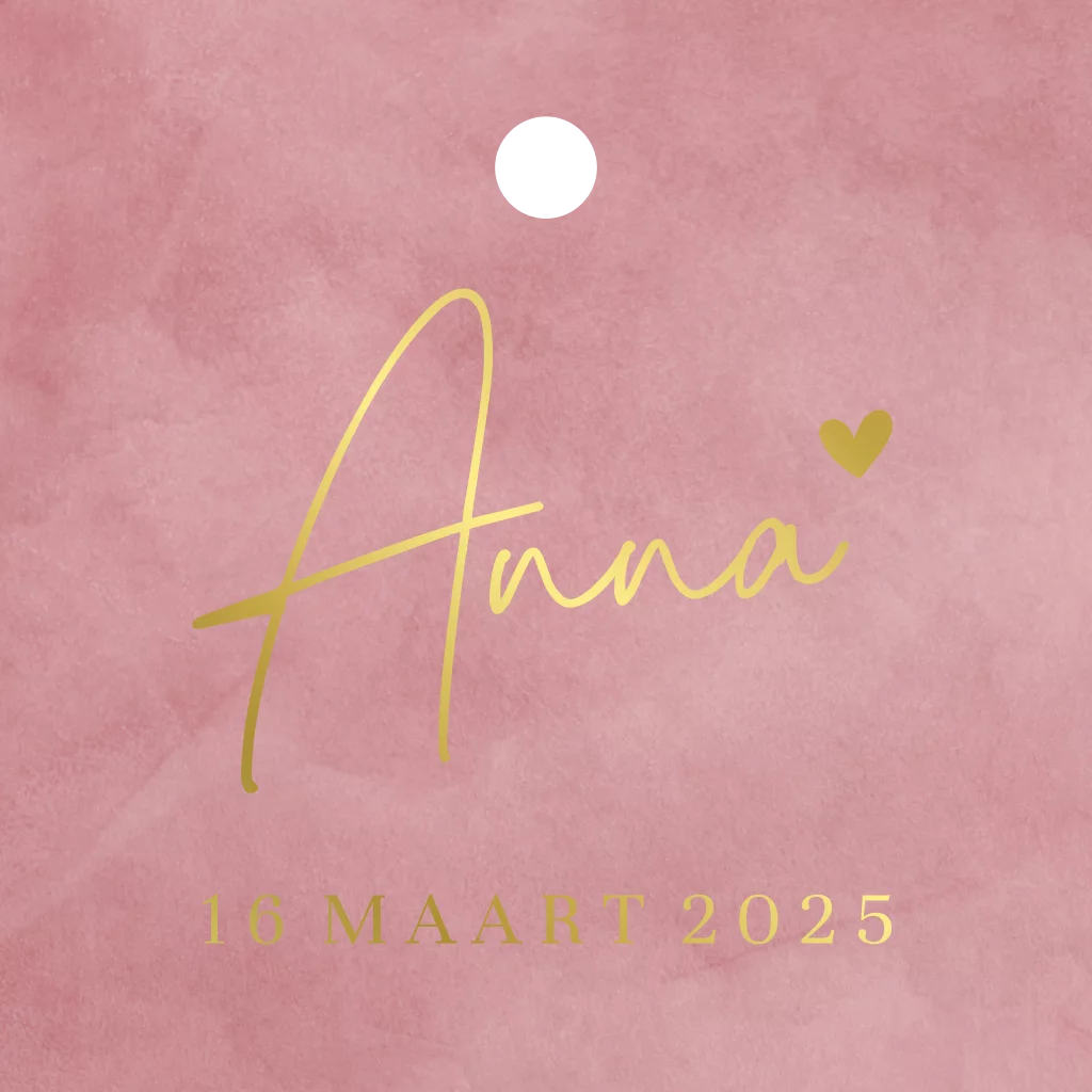 Label vierkant roze met goudfolie naam