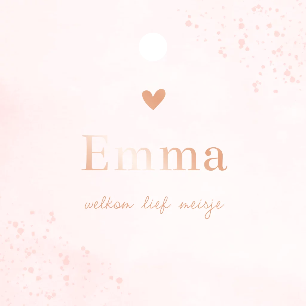 Doopsuiker labeltje in de stijl van het geboortekaartje. Dit labeltje heeft een roze watercolour achtergrond met een lief roségoudfolie hartje. Pas het ontwerp naar wens zelf aan.