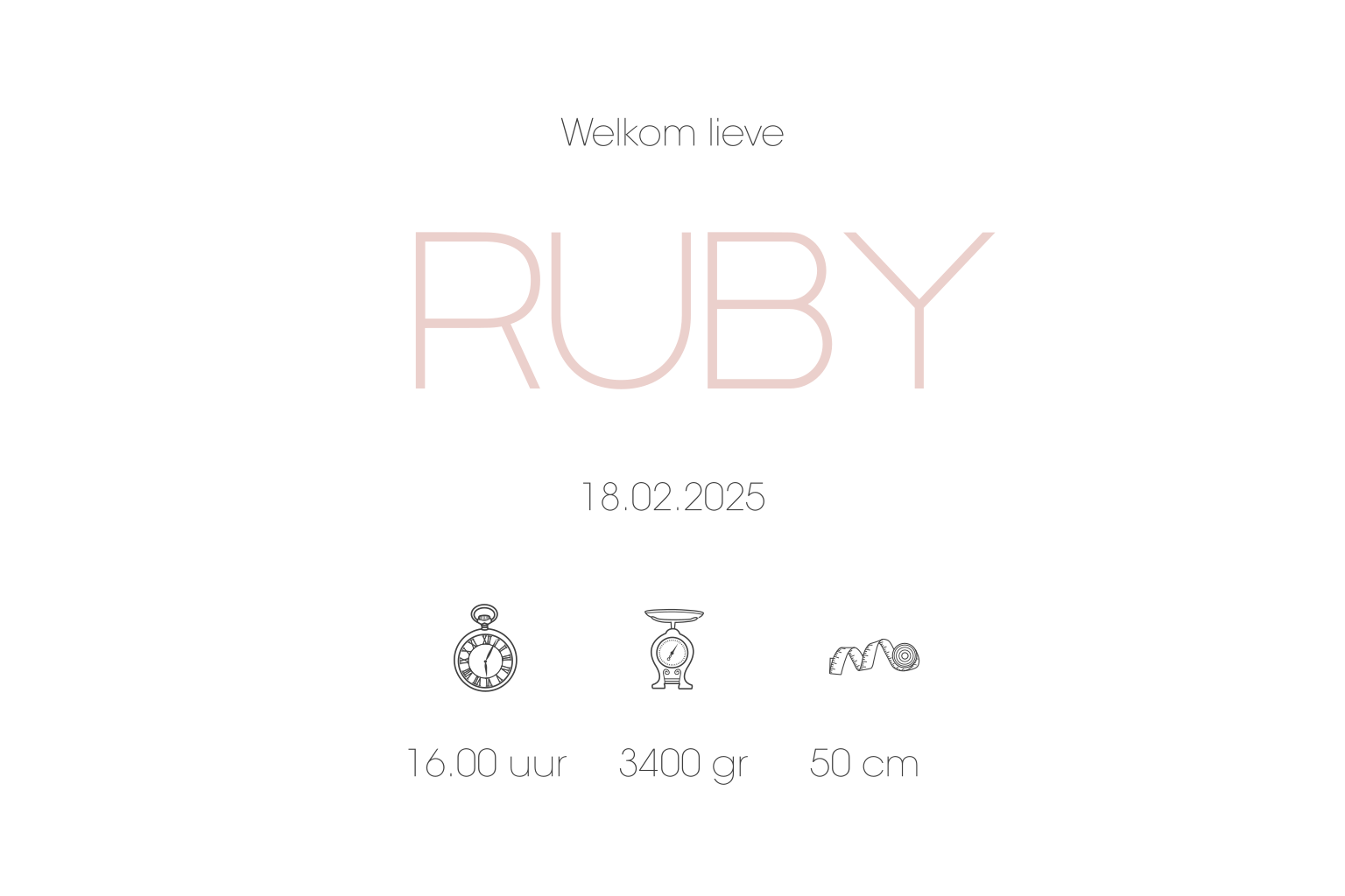Hip geboortekaartje met gedroogde roze bloemetjes