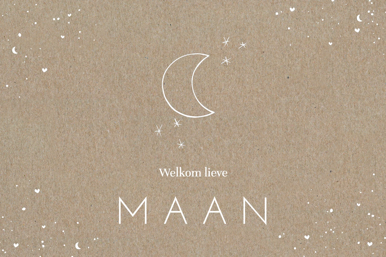 Trendy unisex geboortekaartje die leuk is voor zowel een jongen als een meisje. Het maantje met de sterretjes worden op echt kraft karton afgedrukt en maken dit een uniek geboortekaartje!