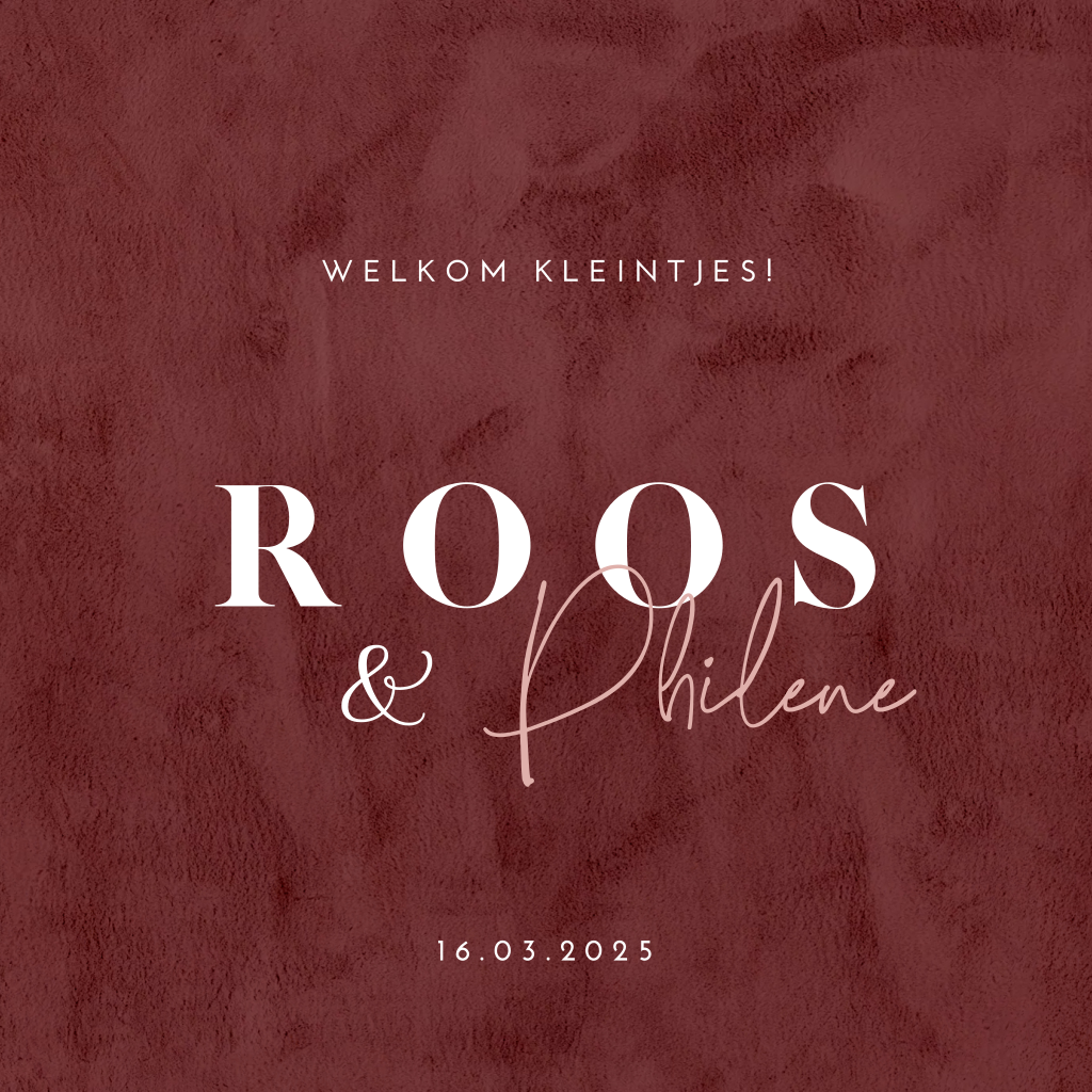 Dit kaartje is hip en dus leuk om de geboorte van jullie tweeling aan de wereld te verkondigen. De achtergrond heeft een velvetlook en de namen staan geschreven in verschillende lettertypen.