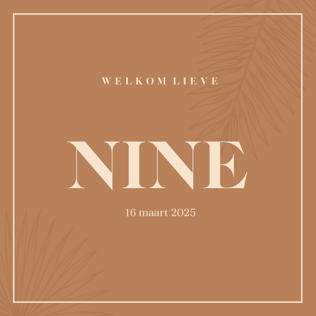Minimalistische bruine geboortekaart dochter met bladeren en kader