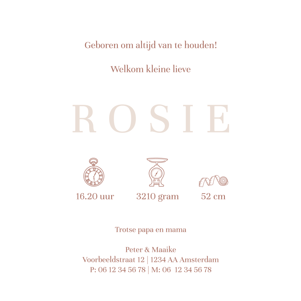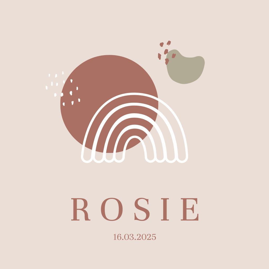 Hip geboortekaartje voor de geboorte van je dochtertje met trendy regenboogje en organische vormen in trendkleuren.