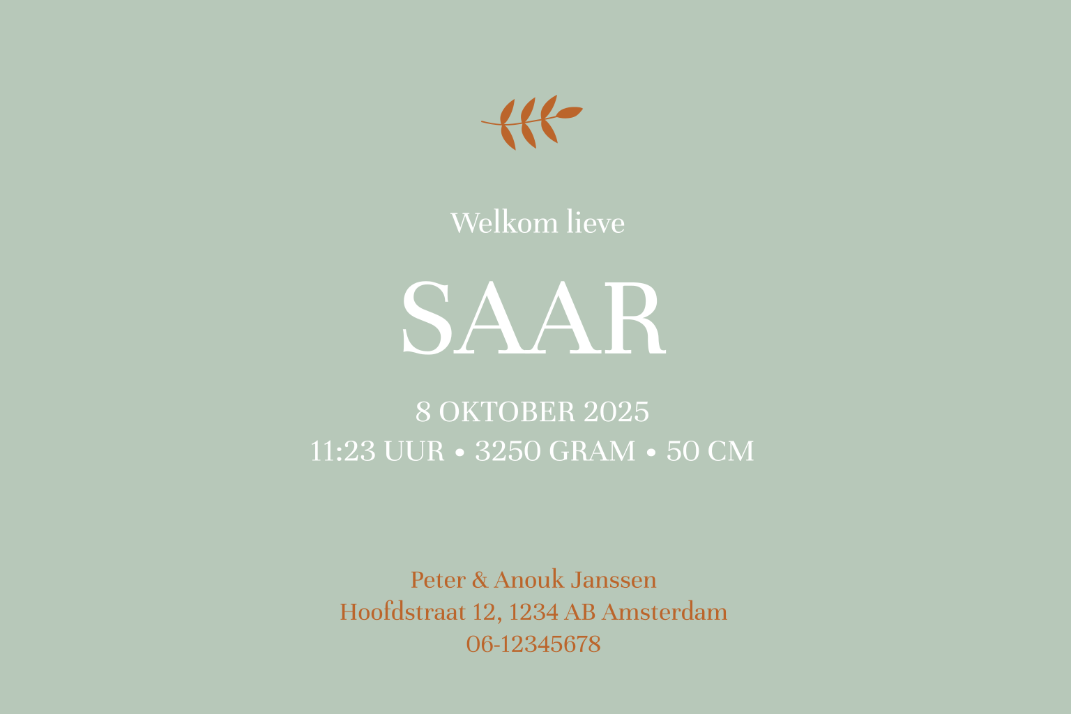 Hippe geboortekaart voor de geboorteaankondiging van je dochter met hippe organische vormen in trendkleuren zoals olijfgroen, roestbruin en peach.