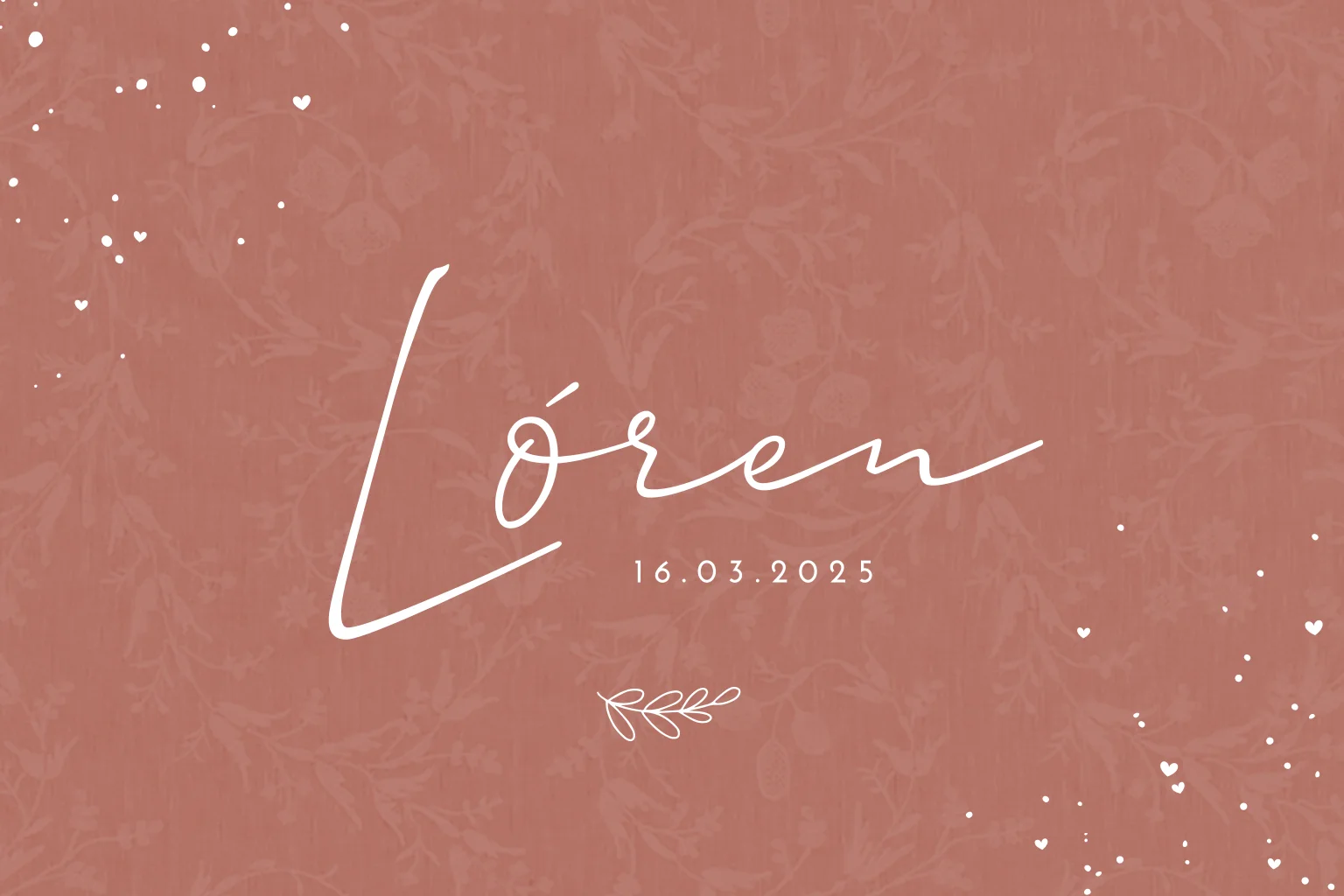 Lief geboortekaartje met spetters, bloemenpatroon en stof-look
