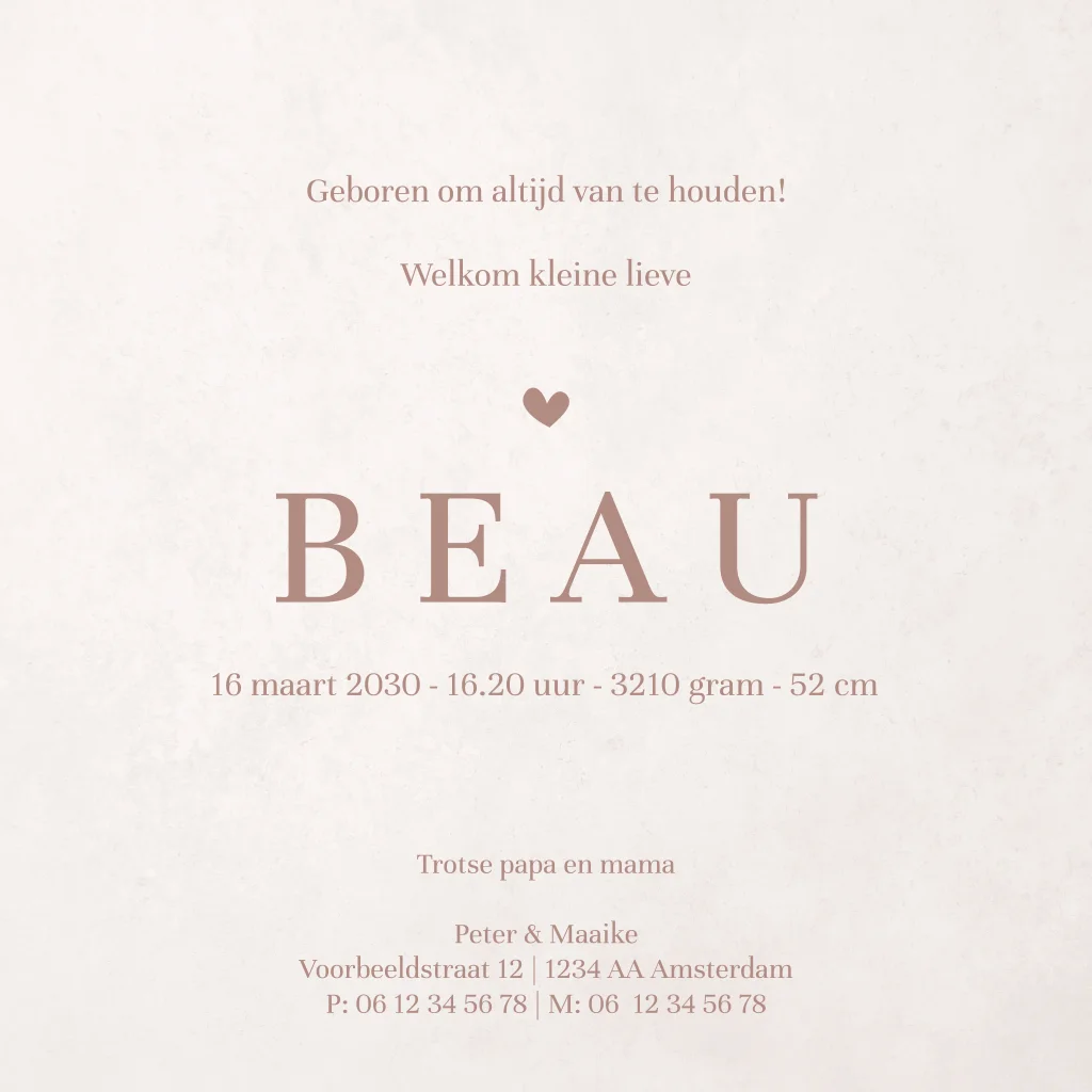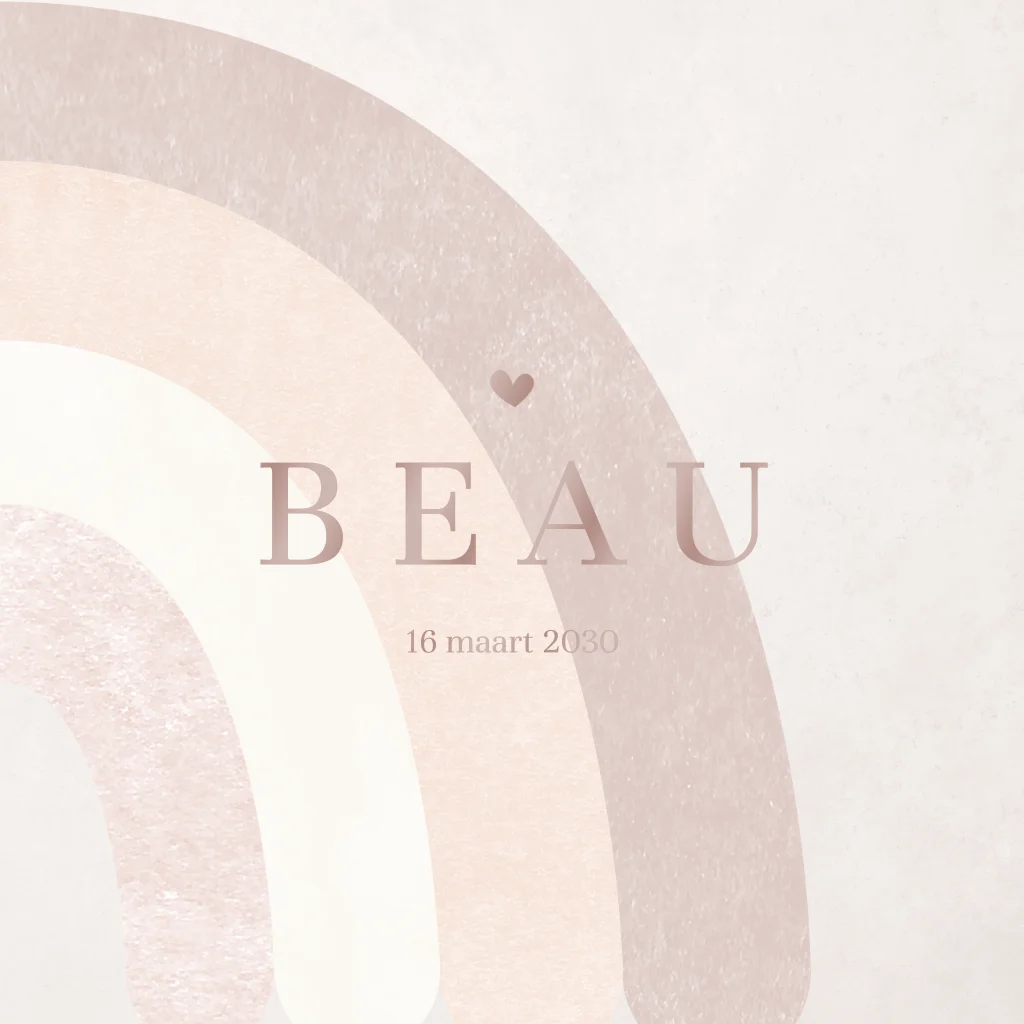 Trendy geboortekaartje met watercolour regenboog op de achtergrond. De aardetinten maken het echt een hip geboortekaartje.