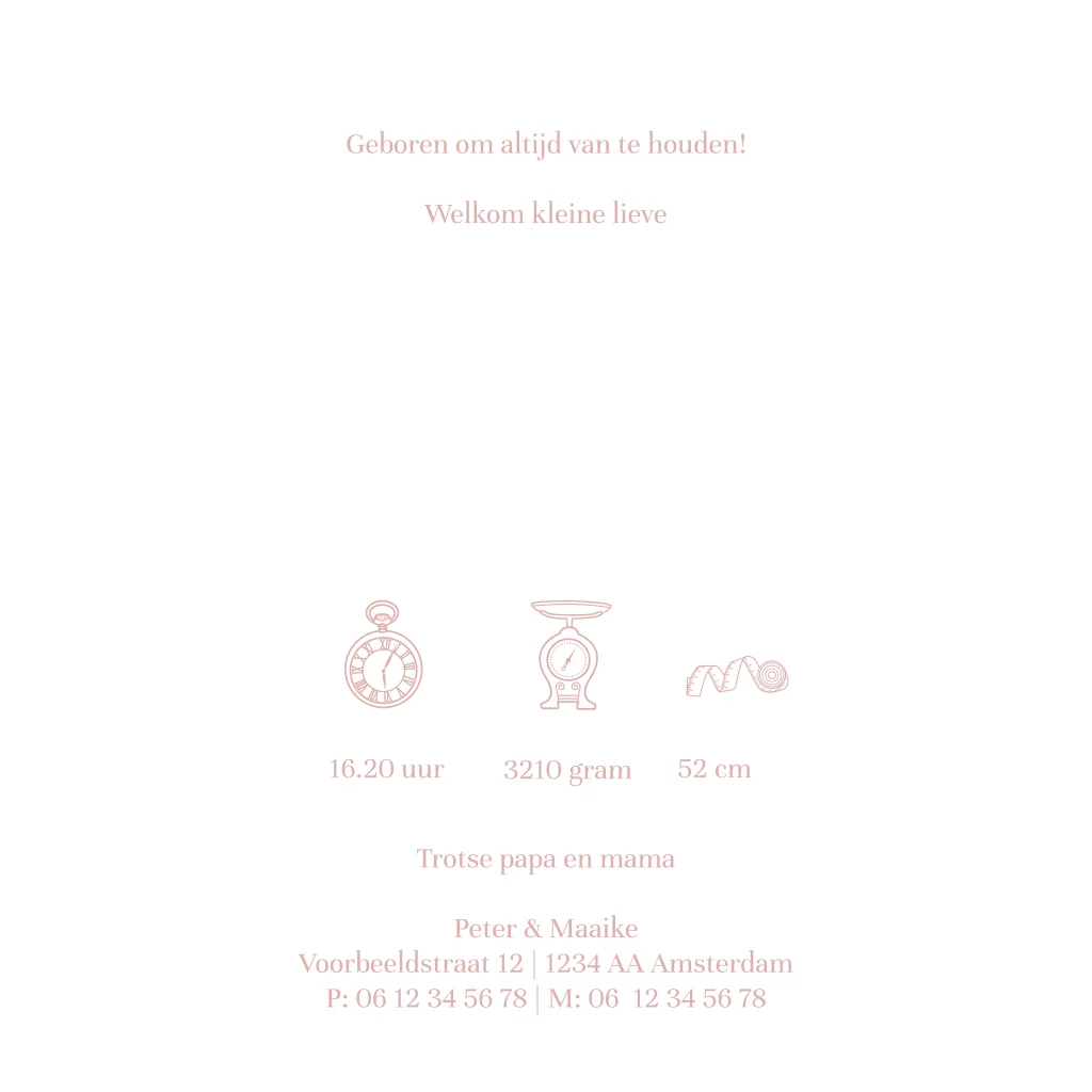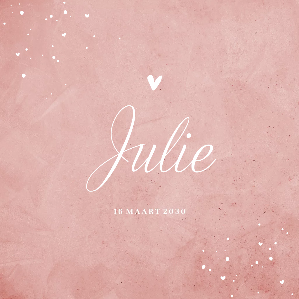 Stijlvol én hip. De combinatie van de roze velvet-look achtergrond met roségoudfolie typografie en details is prachtig. Pas het kaartje naar wens aan in onze opmaaktool en bestel een proefdruk om het kaartje in het echt te bewonderen!