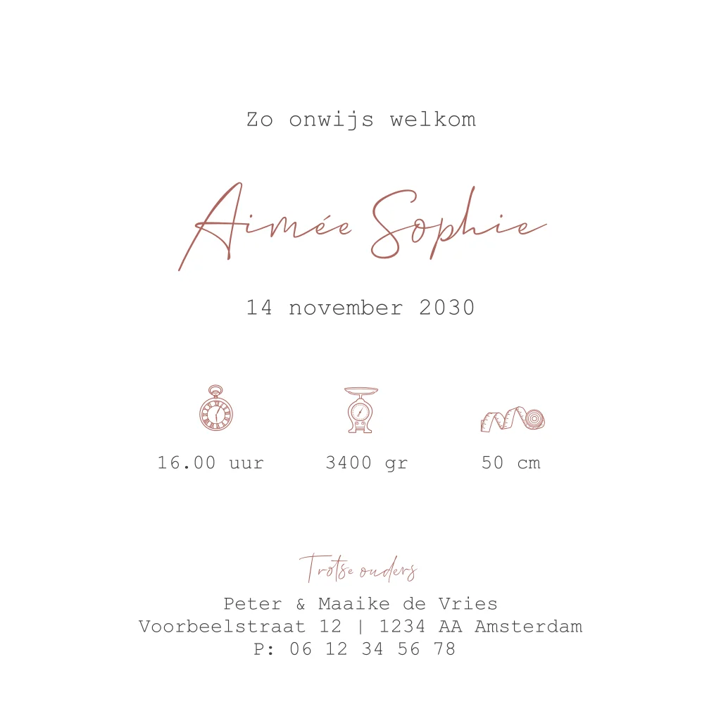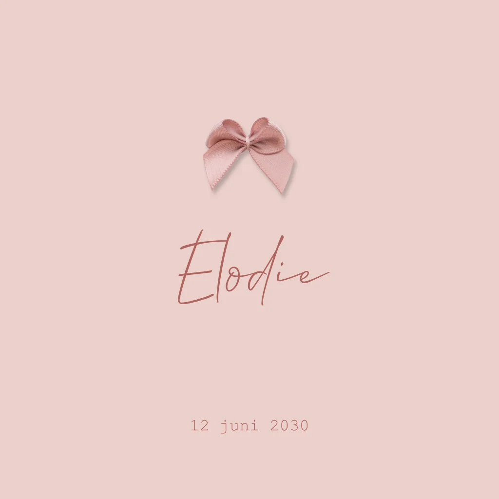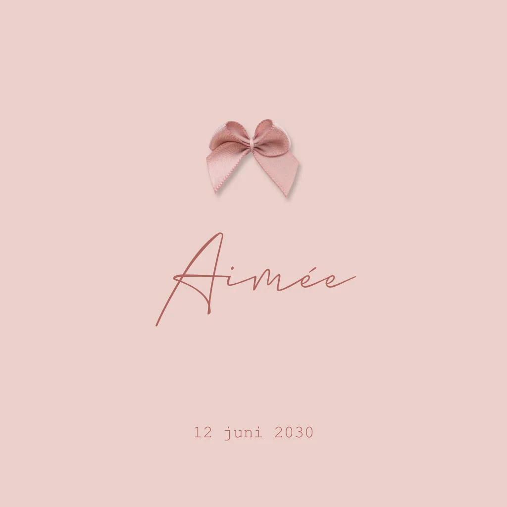 Een romantisch, klassiek geboortekaartje voor de geboorte van jullie kleine meisje. Dit kaartje heeft een klassiek en minimalistisch ontwerp. Boven de naam kan je een echt strikje plakken.
