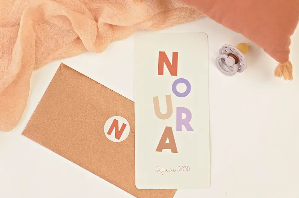 Lief geboortekaartje met pastel kleuren en hoogglans