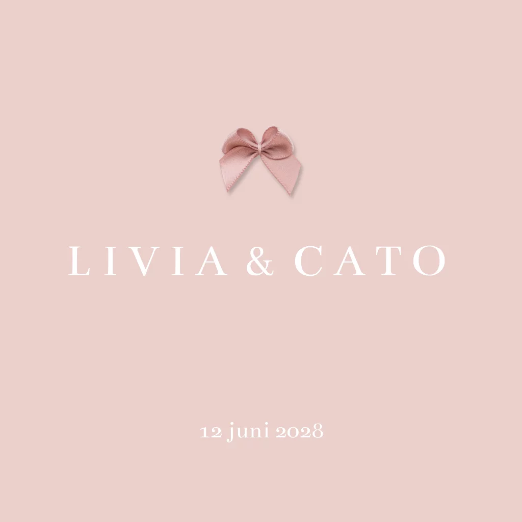 Een lief klassiek geboortekaartje voor de geboorte van jullie tweeling meisjes. Dit kaartje heeft een klassiek en minimalistisch ontwerp. Het kaartje is volledig te personaliseren in onze online editor. Boven de namen kan je een echt strikje plakken.