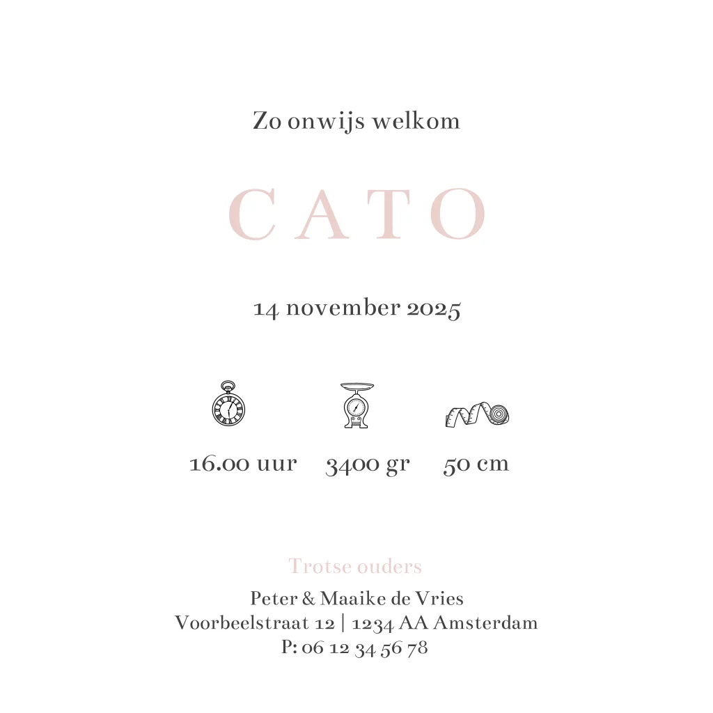 Goed om te weten: De strikjes worden niet standaard meegeleverd, dit kun je gemakkelijk zelf toevoegen tijdens het bestelproces. Je vindt alle bevestigingsmaterialen hier. Wanneer je de geboortekaartjes ontvangt, kun je het kaartje zelf verrijken met het gekozen strikje.