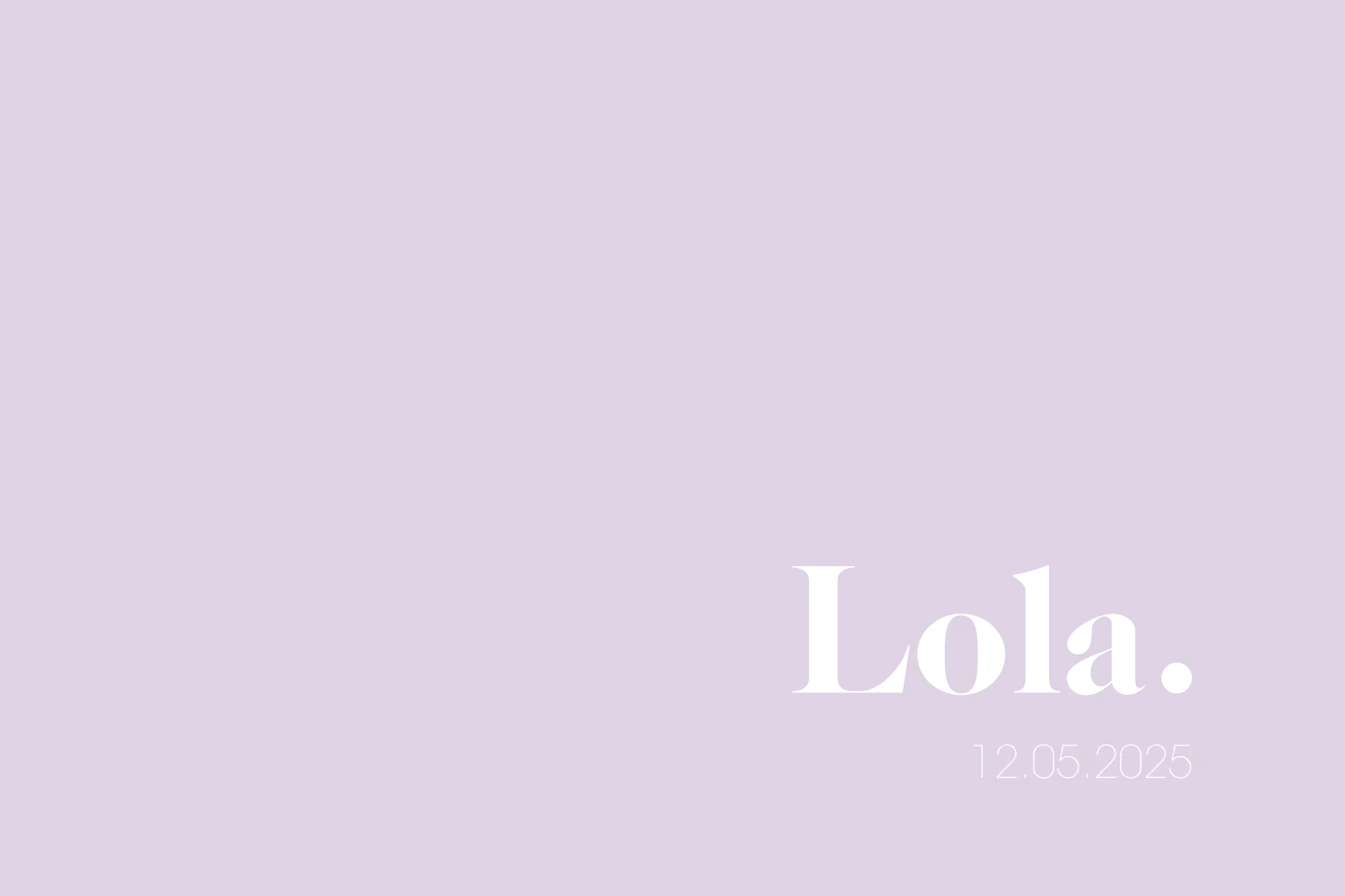 Een fris en hip geboortekaartje met de kleur lila. De letters op het kaartje zijn gedrukt in goudfolie. Het kaartje heeft een minimalistische uitstraling en is in onze online editor volledig te personaliseren.