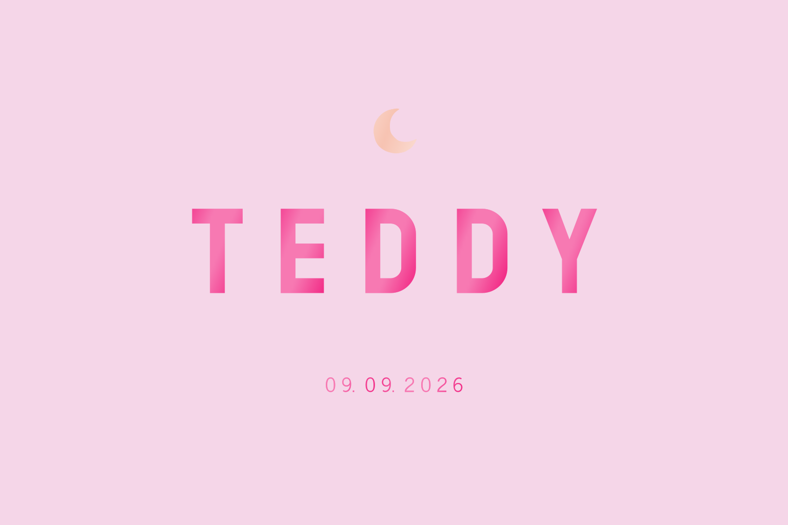 Een liggend trendy geboortekaartje voor jullie kleintje. Het kaartje heeft een roze achtergrond met daarop blauwe hoogglans letters. In onze editor kan je het kaartje naar wens aanpassen.