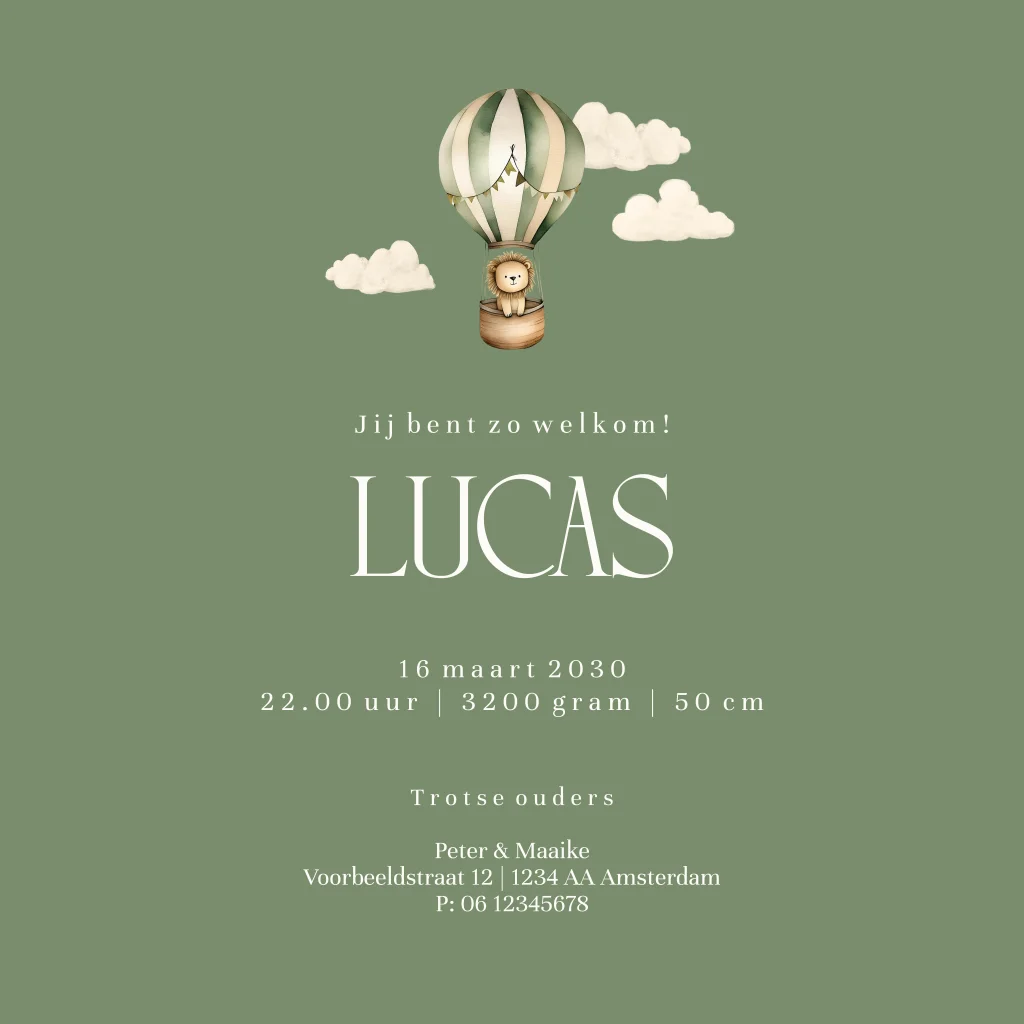 Bekijk hier al onze geboortekaartjes met luchtballon.