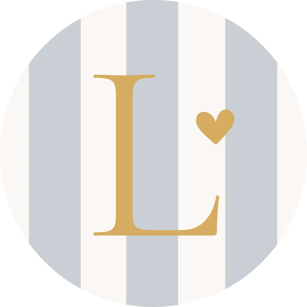 Een leuke naamsticker passend bij het geboortekaartje. De sticker heeft blauwe strepen en een initiaal. Pas het ontwerp naar wens zelf aan.